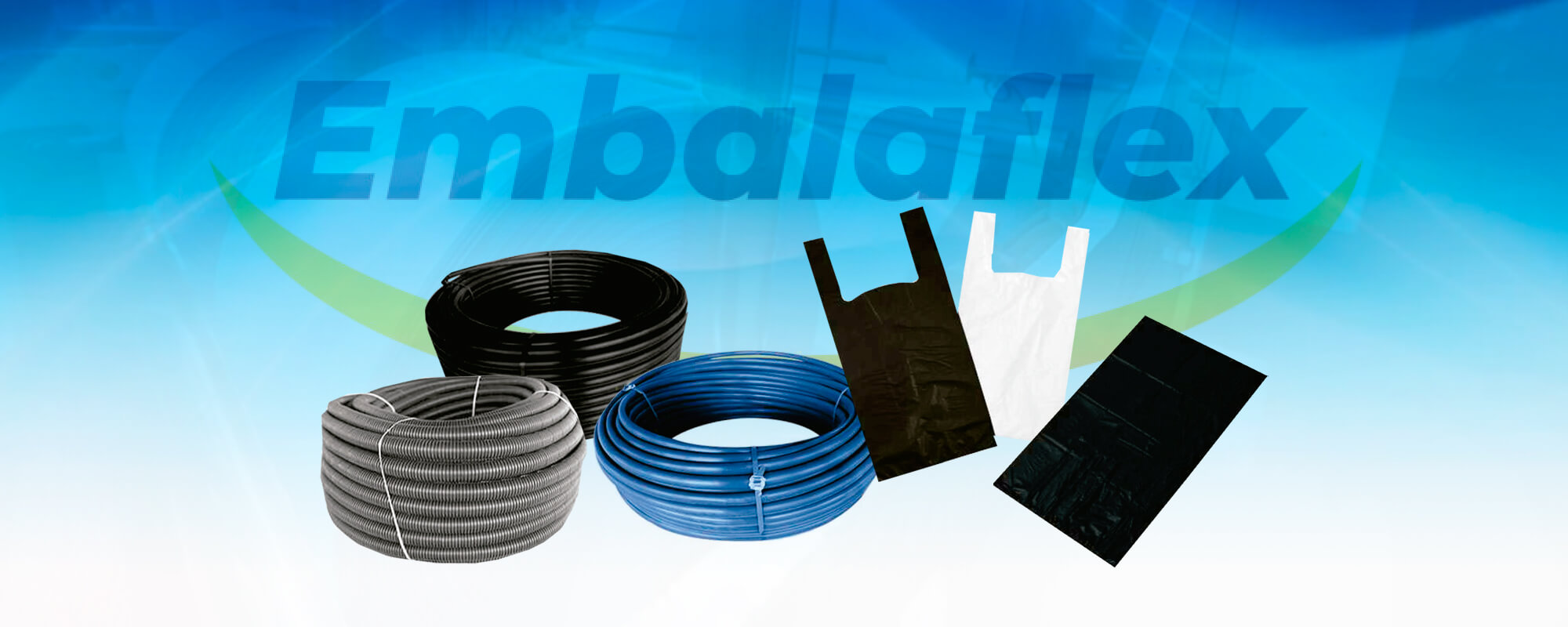 Com o aumento da produção a Embalaflex hoje, possui uma ampla grade de produtos, atingindo todo o comércio de construção civil com nossas mangueiras lisas e corrugadas, e atendendo também a toda e qualquer necessidade de nossos clientes com variados tipos de embalagens plásticas: Como sacolas recicladas, sacos para lixo, embalagens para produtos alimentícios, sacolas impressas para lojas, entre outros.